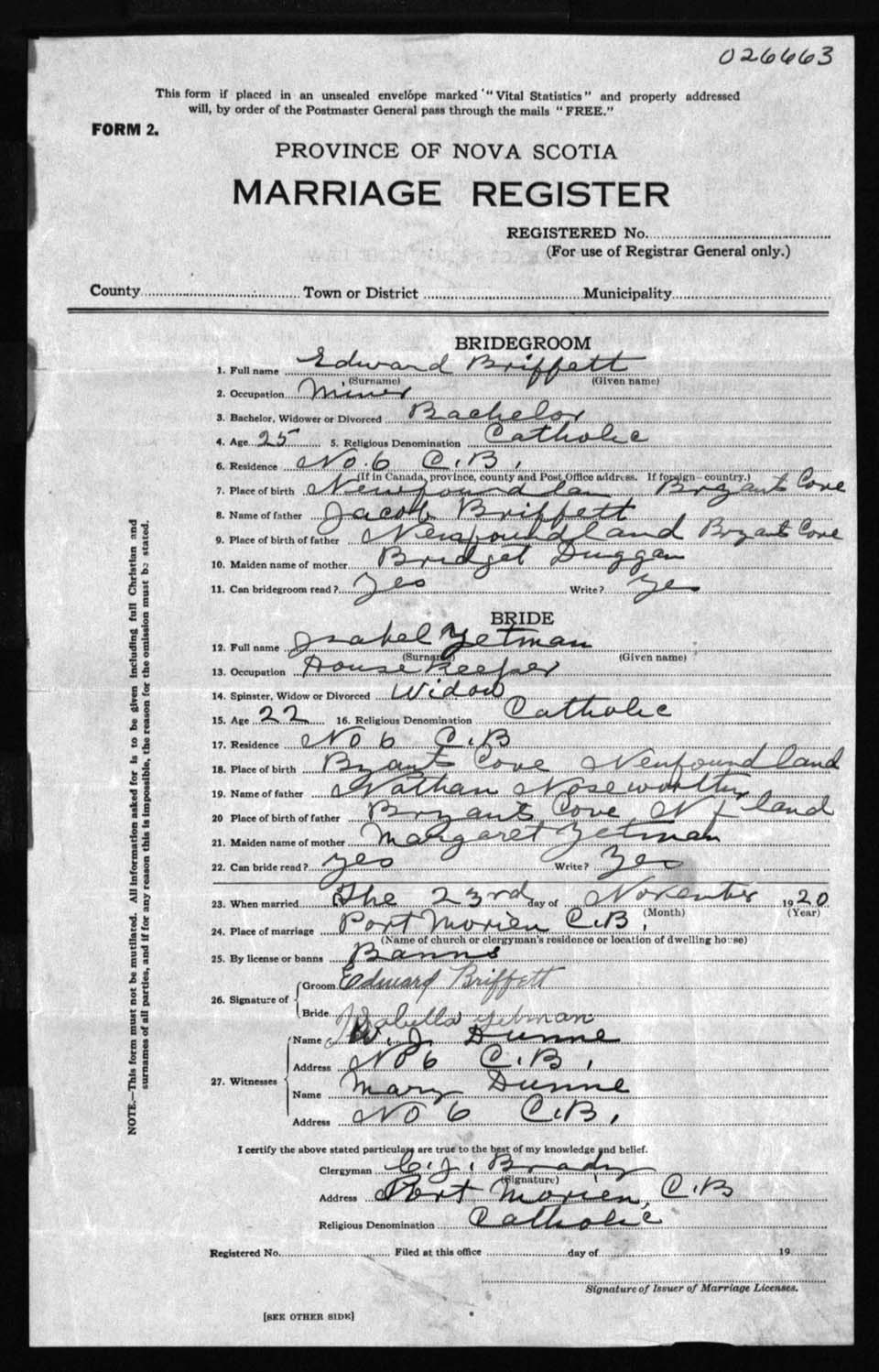 Registration: Year: 1920 number: 26663