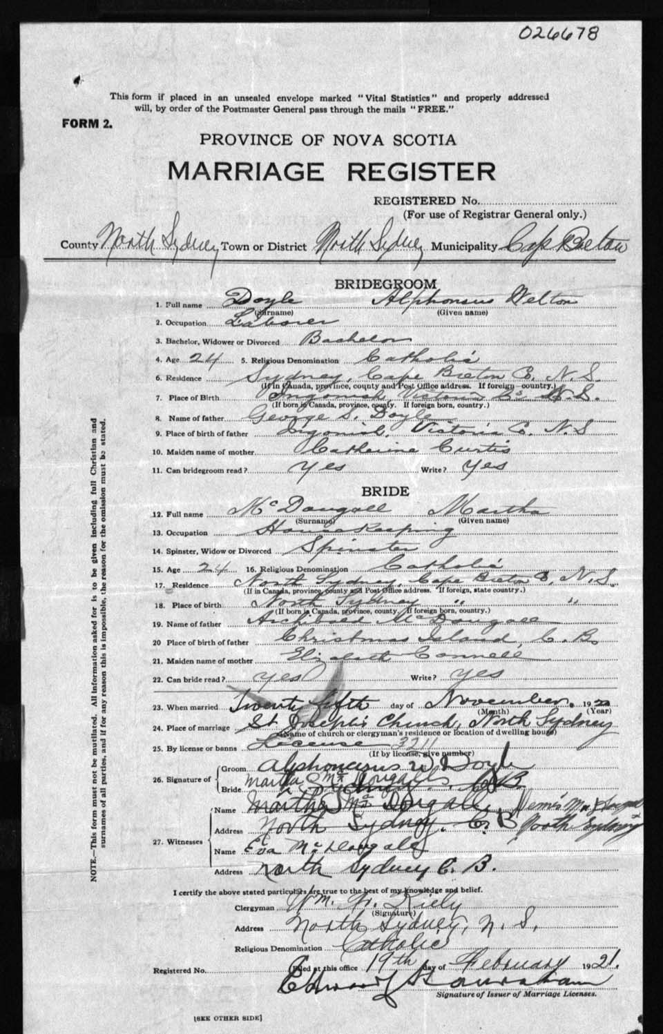 Registration: Year: 1920 number: 26678