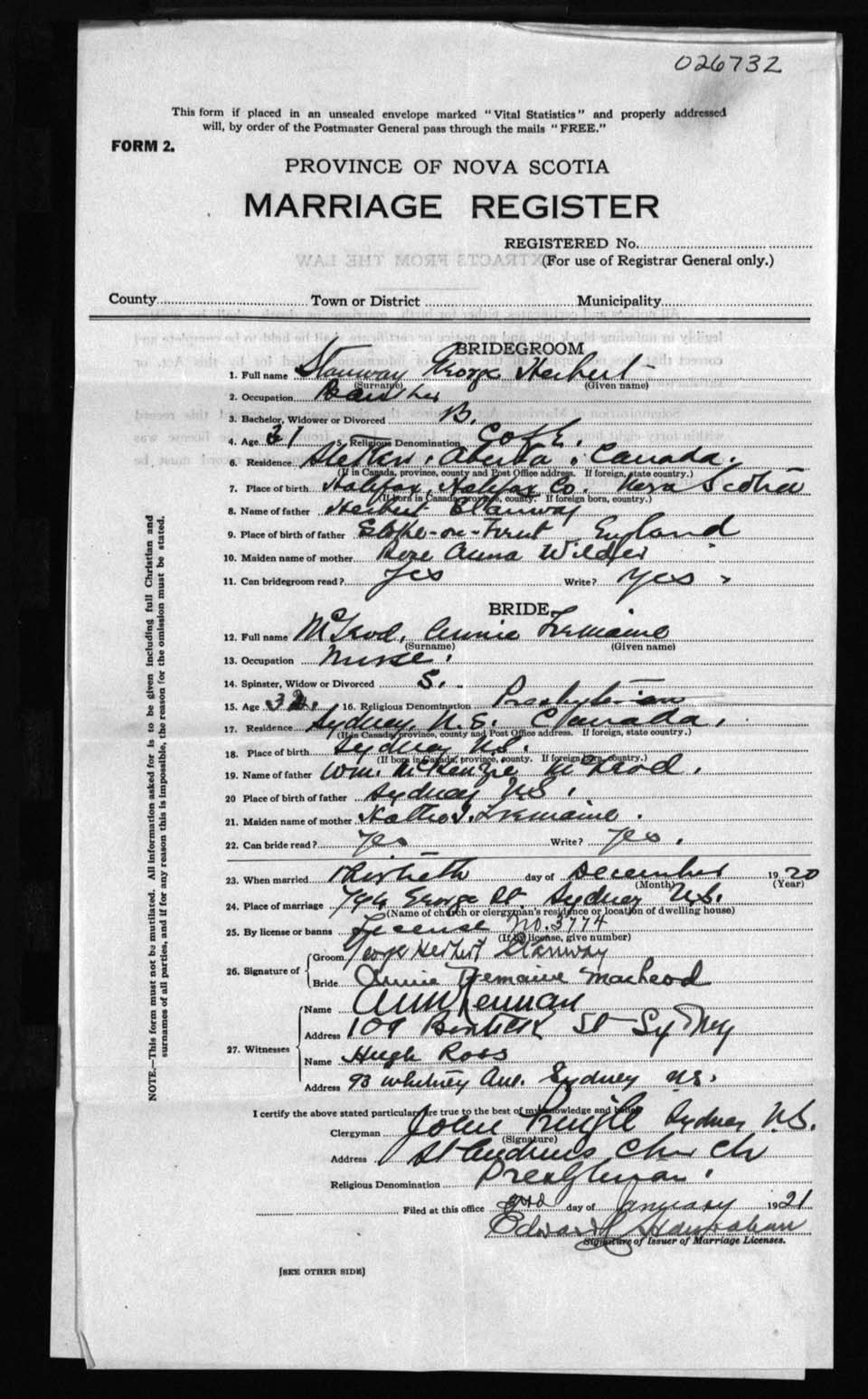 Registration: Year: 1920 number: 26732