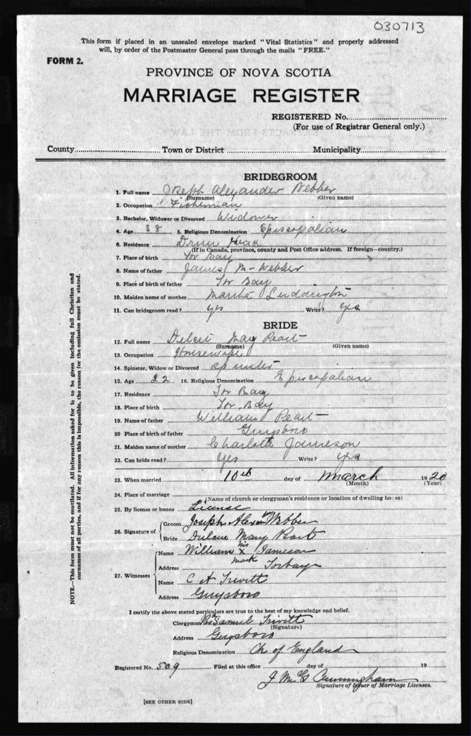 Registration: Year: 1920 number: 30713