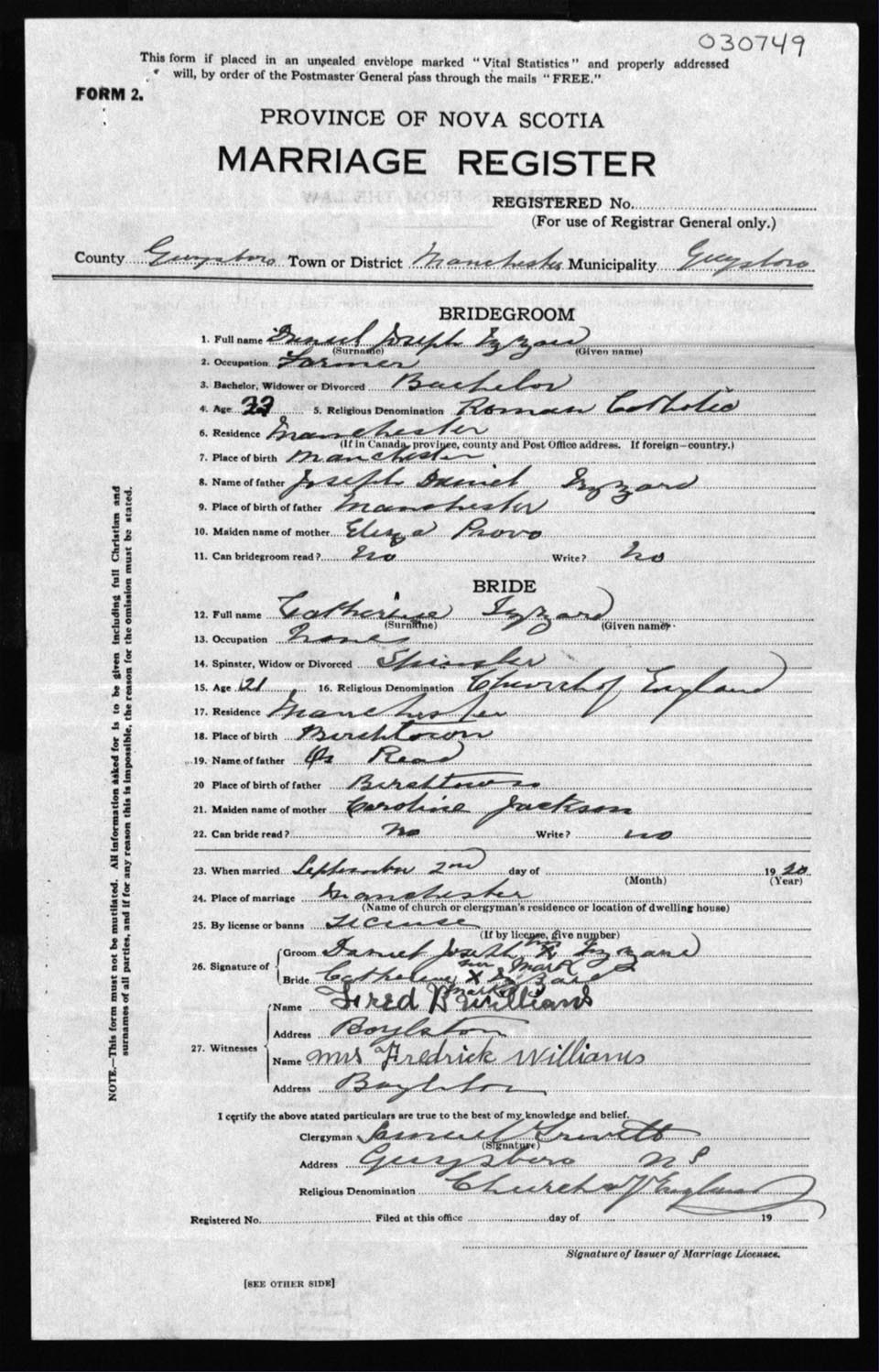 Registration: Year: 1920 number: 30749
