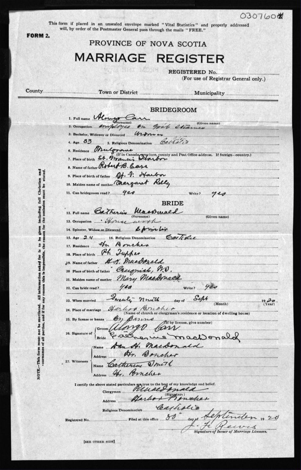 Registration: Year: 1920 number: 30760