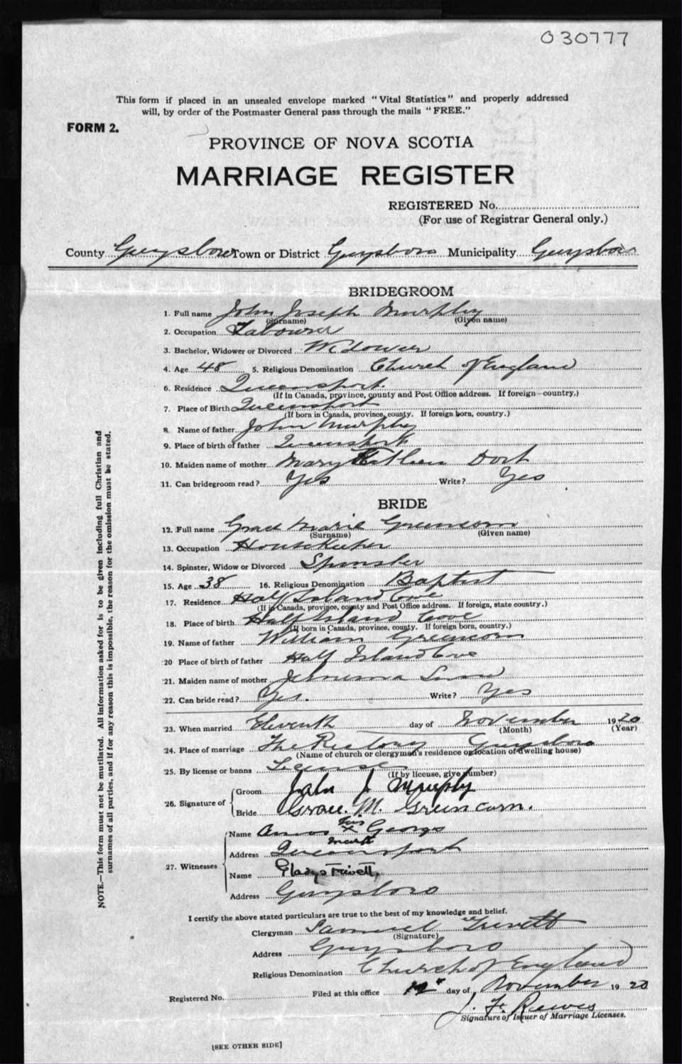 Registration: Year: 1920 number: 30777