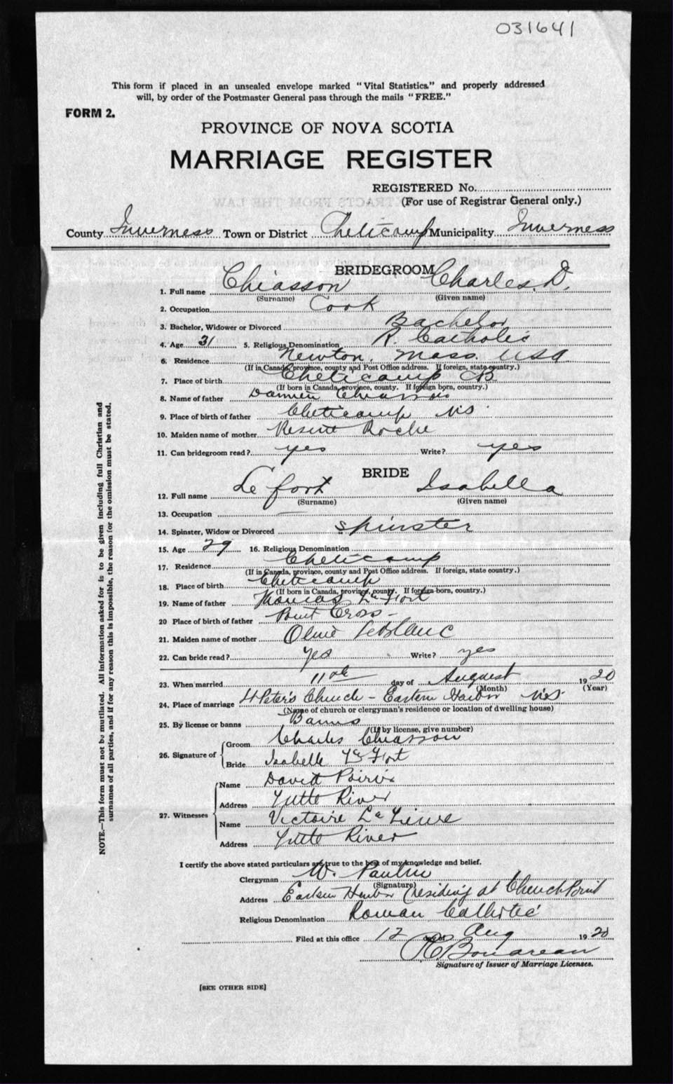 Registration: Year: 1920 number: 31641