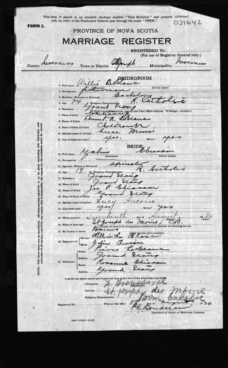 Registration: Year: 1920 number: 31642