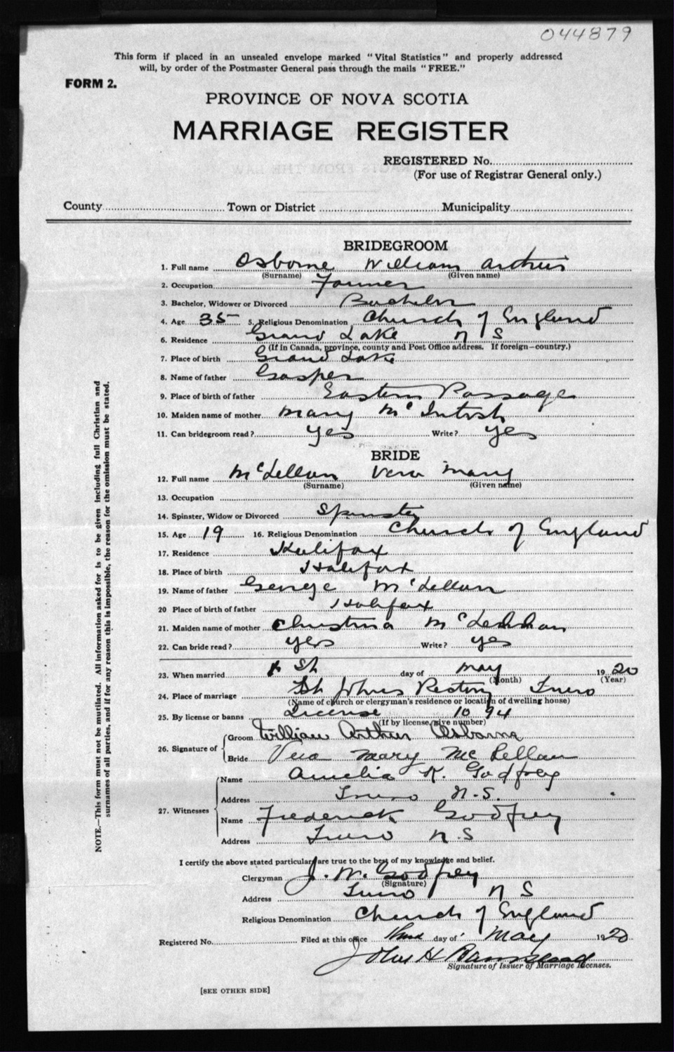 Registration: Year: 1920 number: 44879