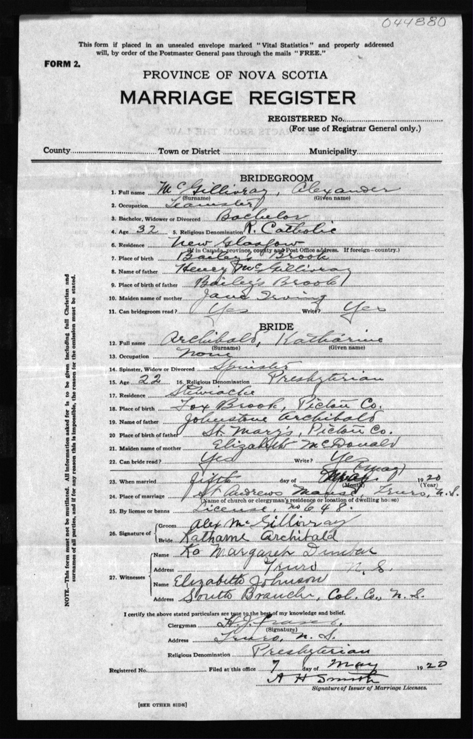 Registration: Year: 1920 number: 44880
