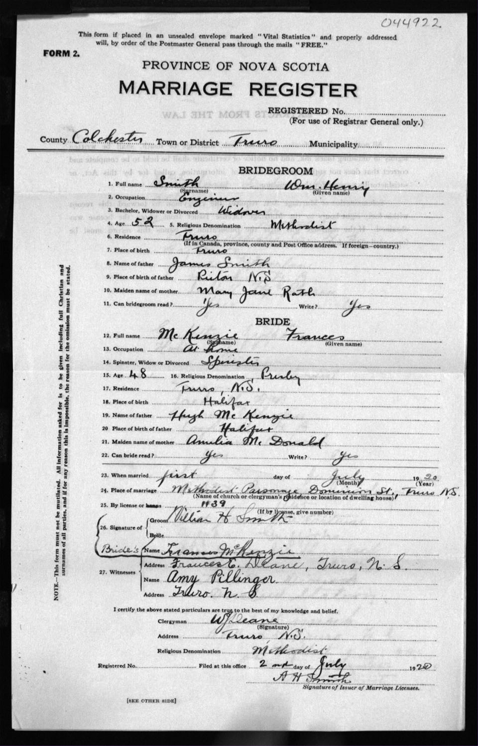 Registration: Year: 1920 number: 44922