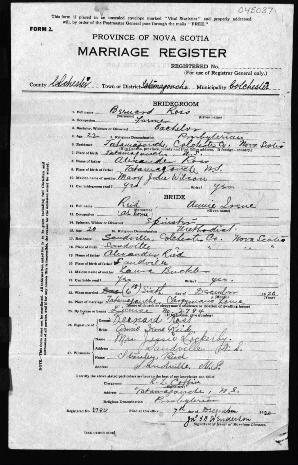 Registration: Year: 1920 number: 4537