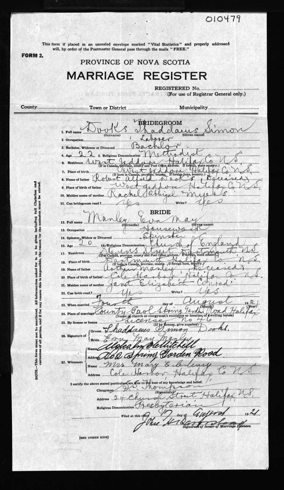Registration: Year: 1921 number: 10479