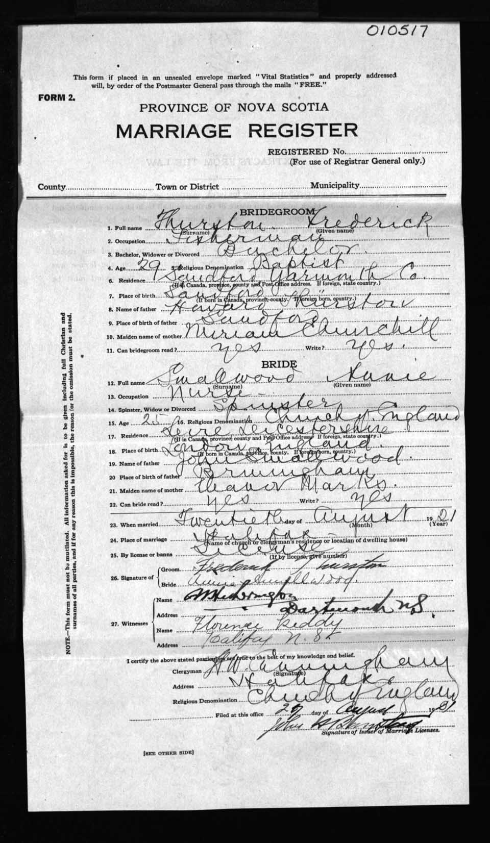 Registration: Year: 1921 number: 10517