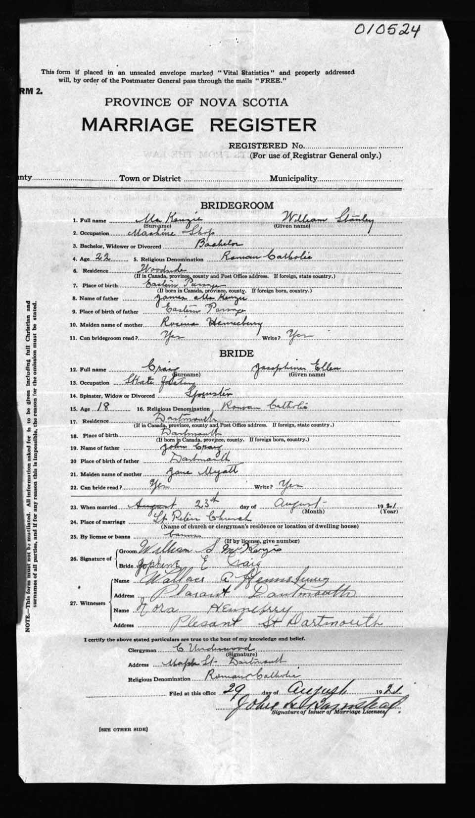Registration: Year: 1921 number: 10524