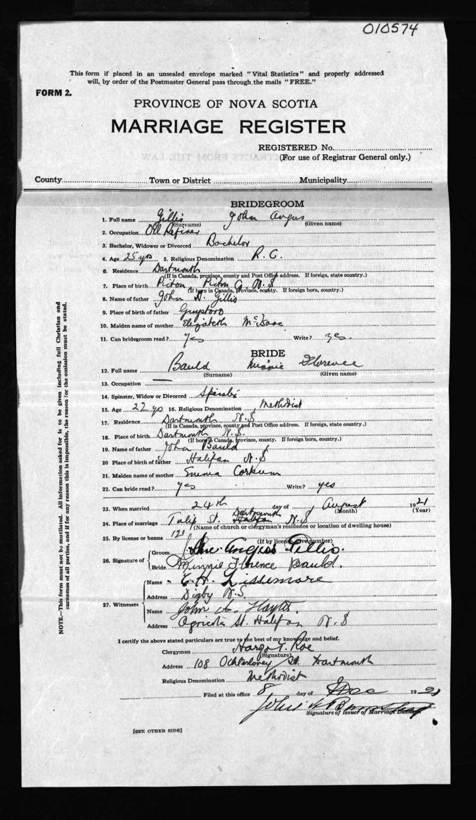 Registration: Year: 1921 number: 10574