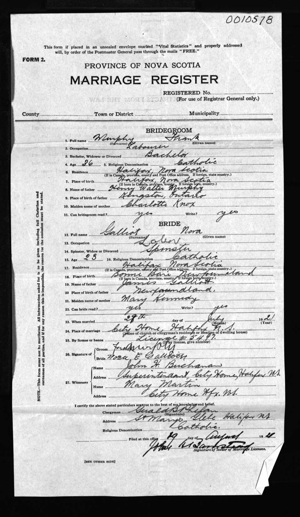 Registration: Year: 1921 number: 10578