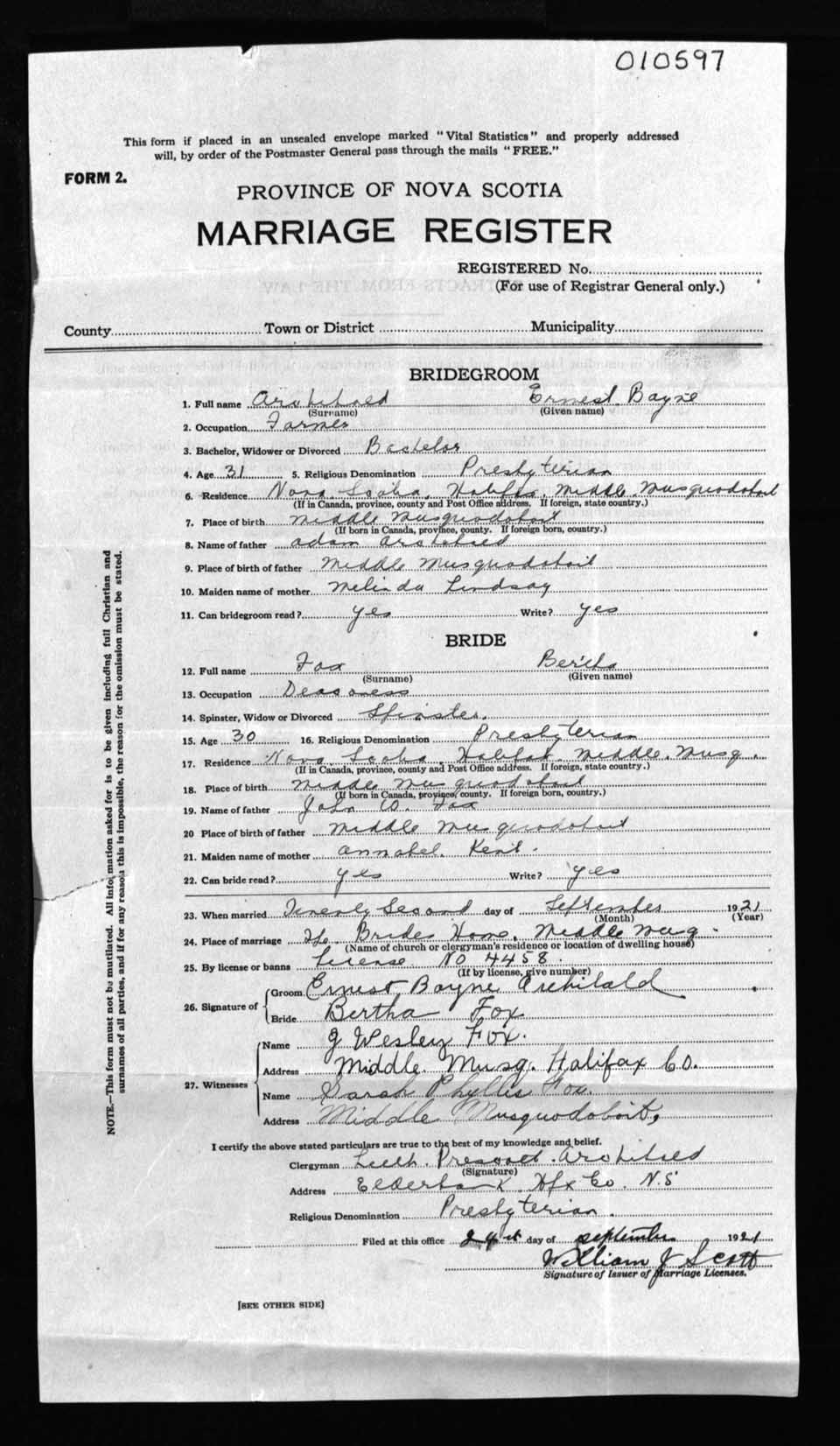 Registration: Year: 1921 number: 10597