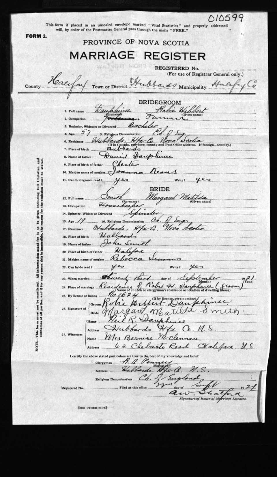 Registration: Year: 1921 number: 10599