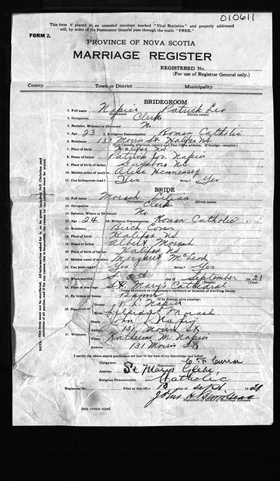 Registration: Year: 1921 number: 10611
