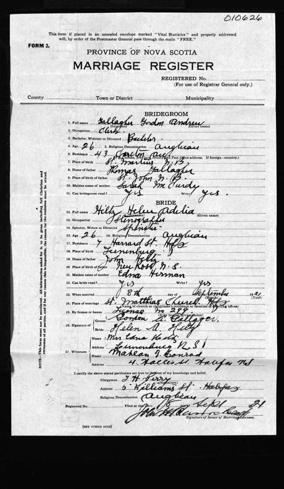 Registration: Year: 1921 number: 10626