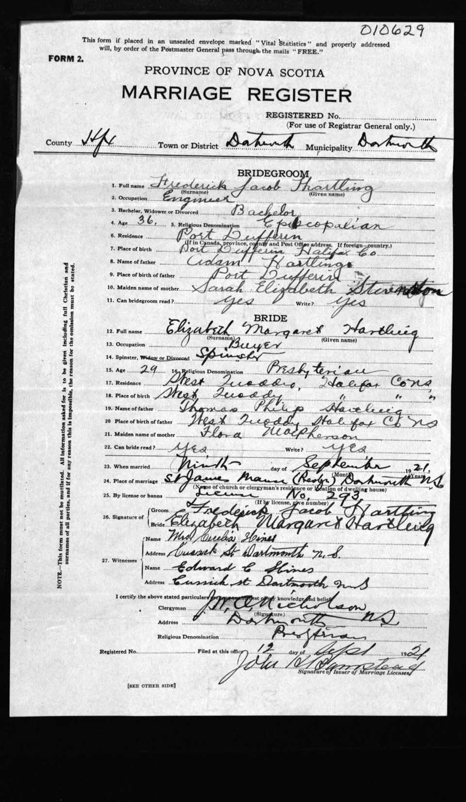 Registration: Year: 1921 number: 10629