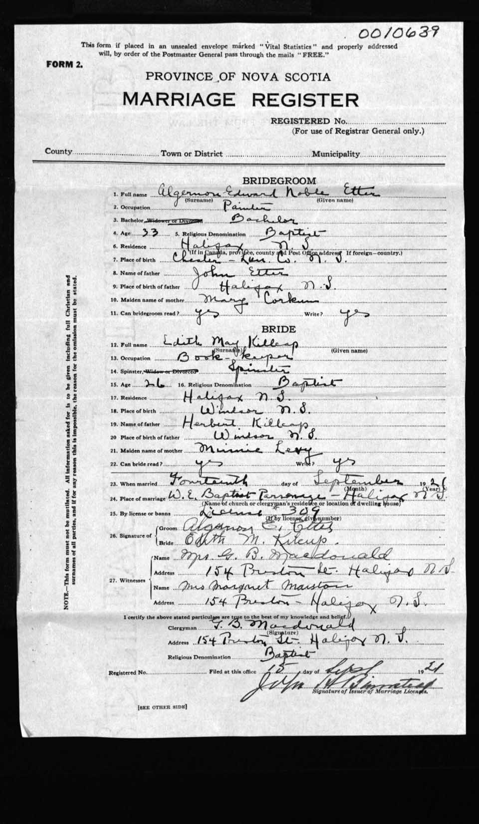 Registration: Year: 1921 number: 10639