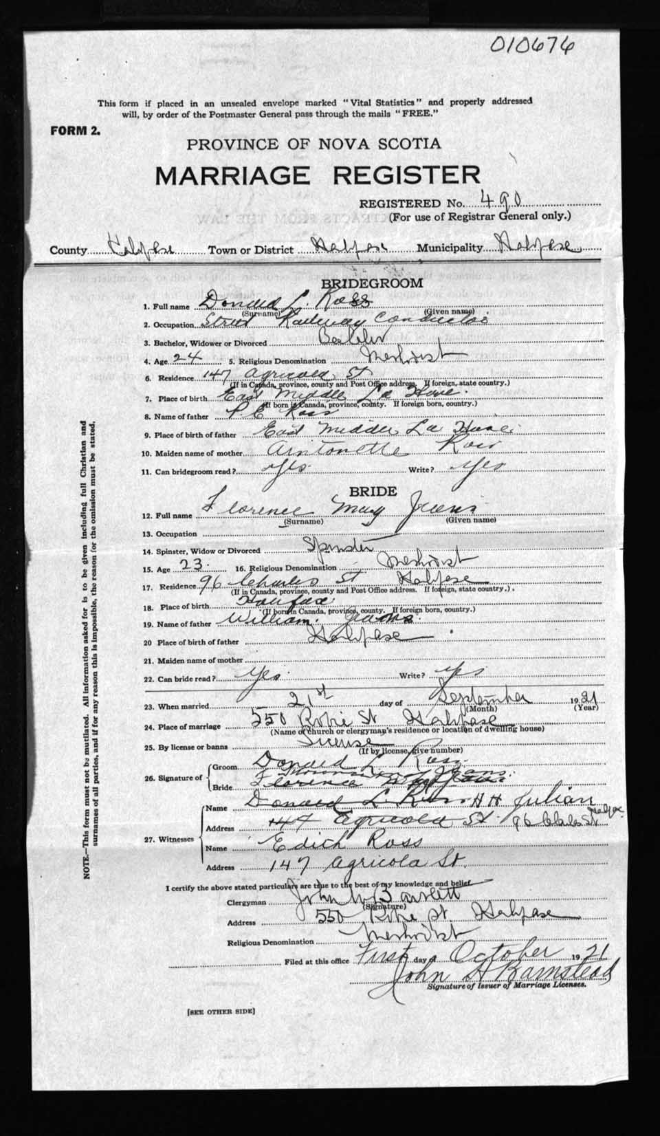 Registration: Year: 1921 number: 10676