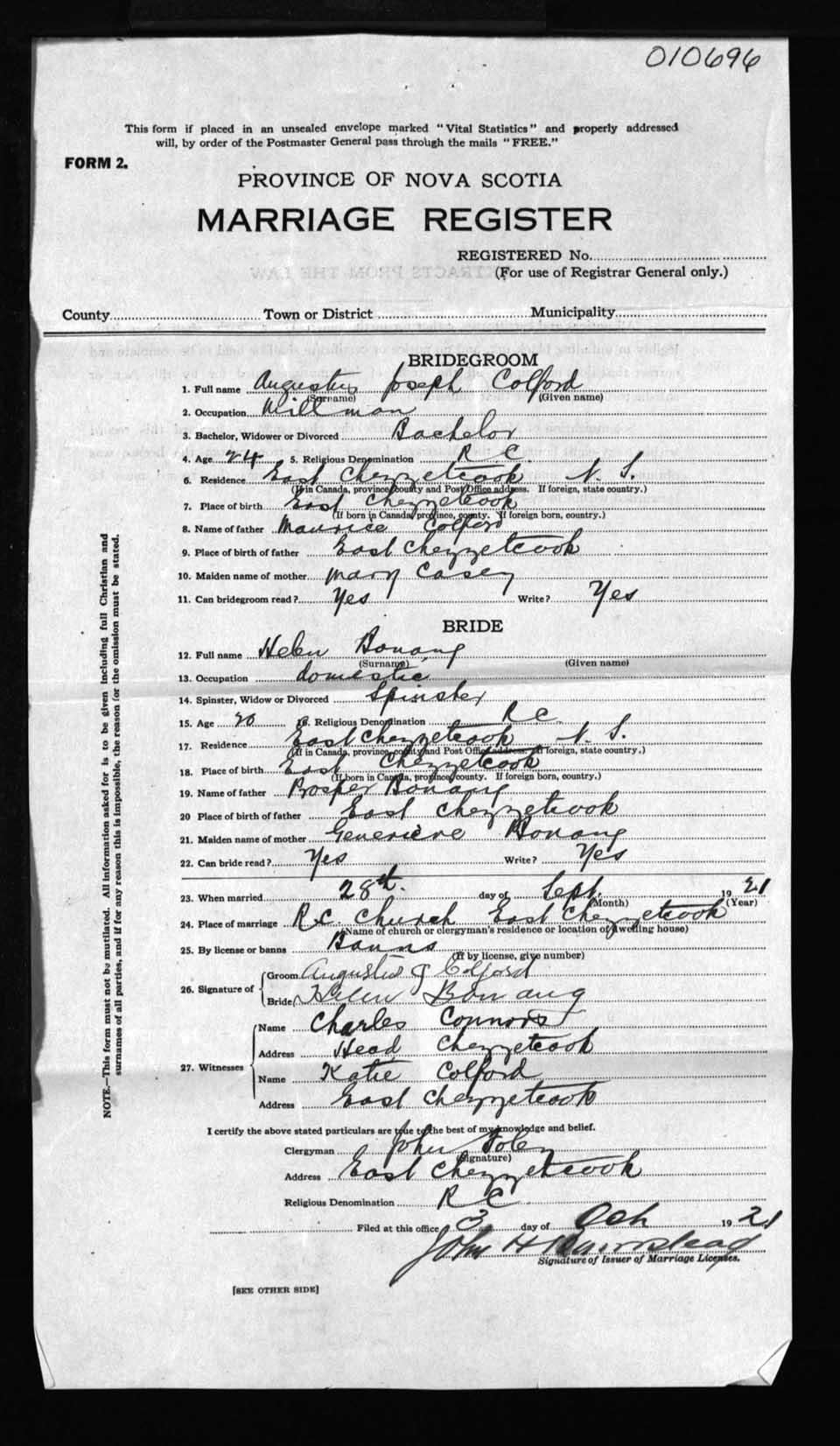 Registration: Year: 1921 number: 10696