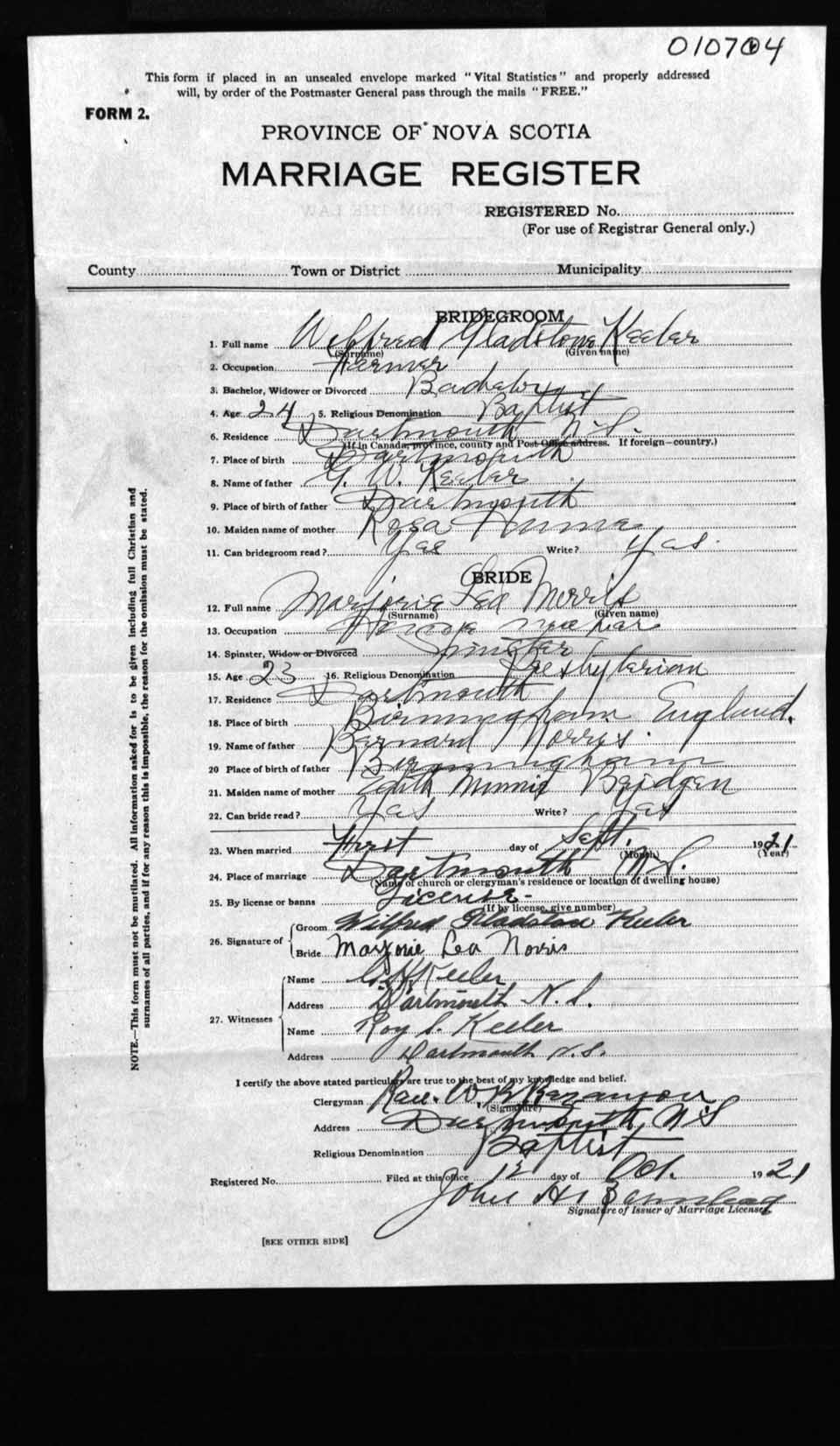 Registration: Year: 1921 number: 10704