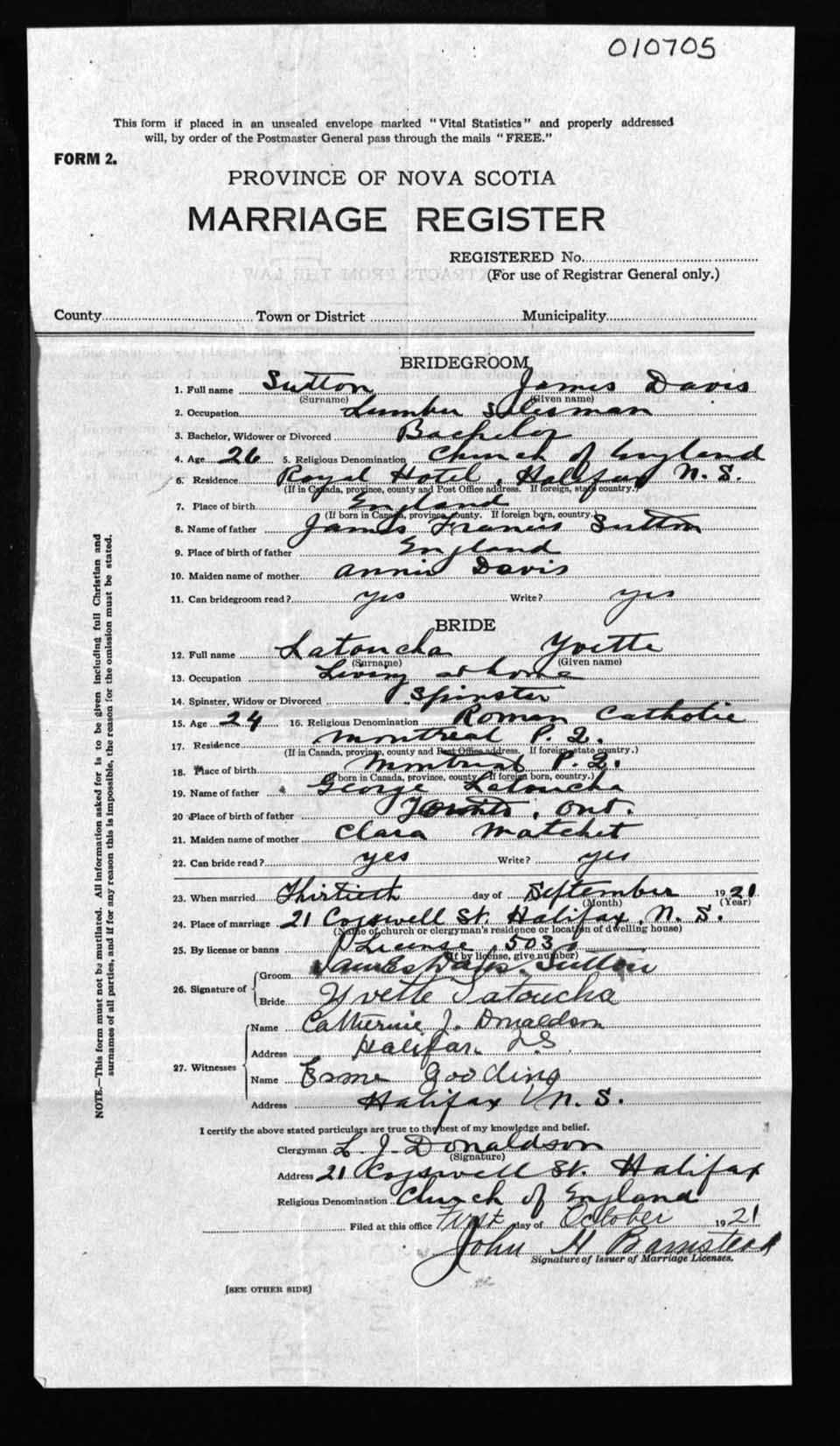 Registration: Year: 1921 number: 10705