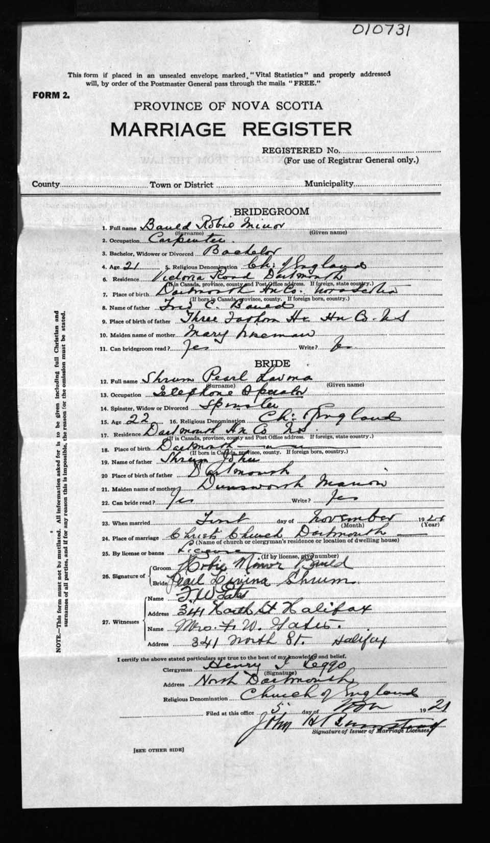Registration: Year: 1921 number: 10731