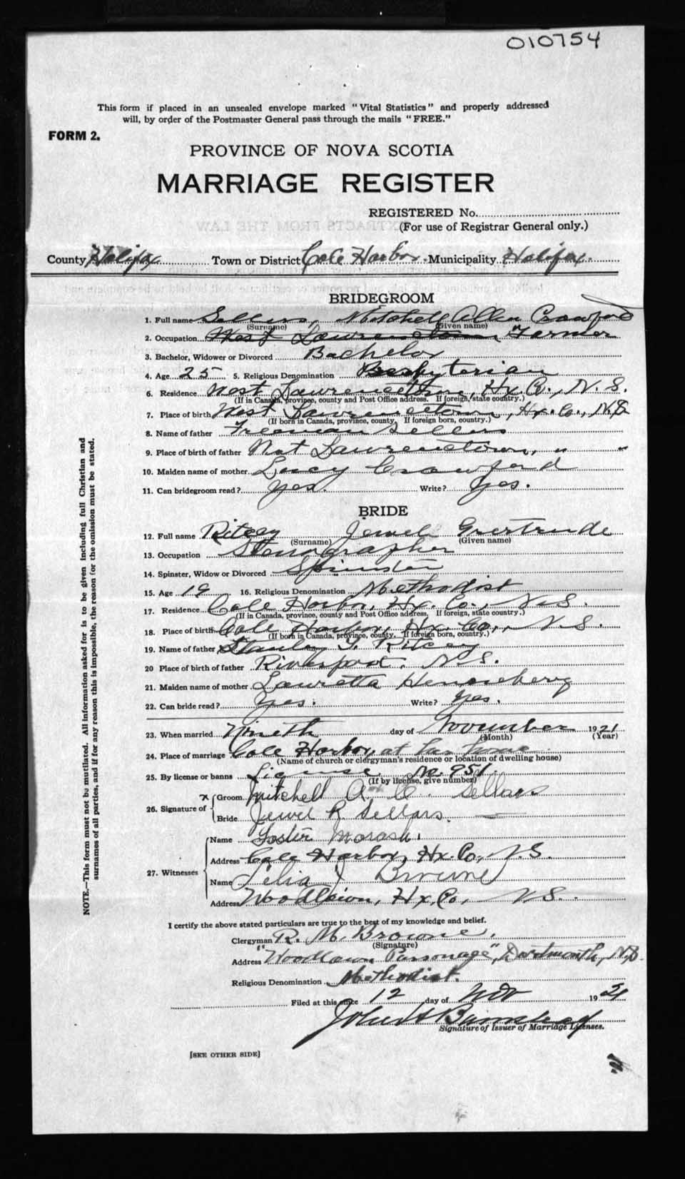 Registration: Year: 1921 number: 10754