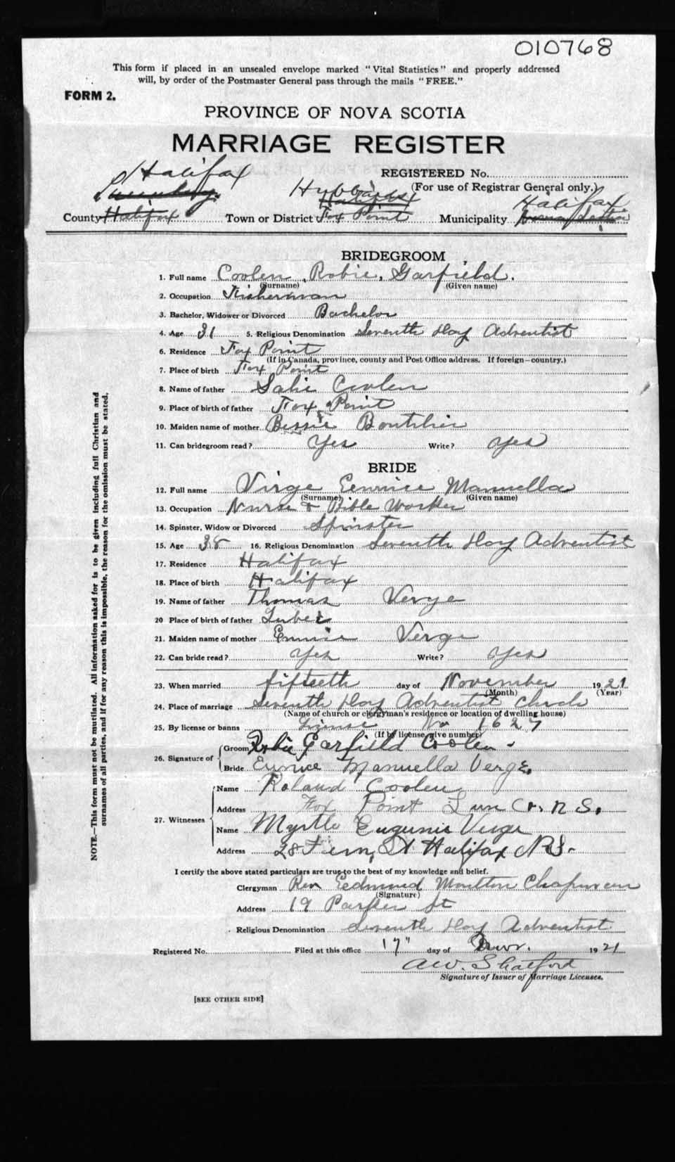Registration: Year: 1921 number: 10768