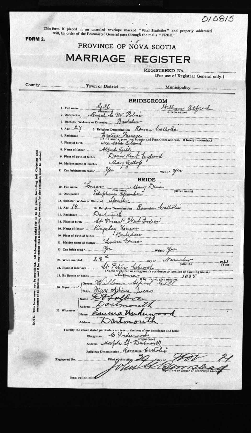 Registration: Year: 1921 number: 10815