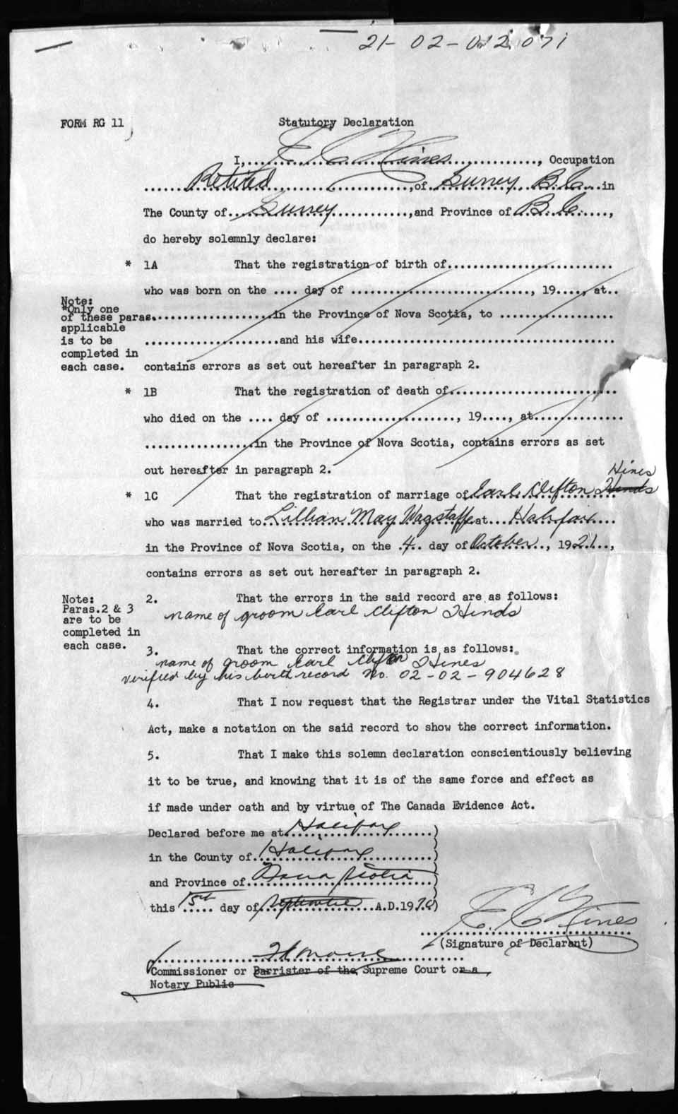 Registration: Year: 1921 number: 1271