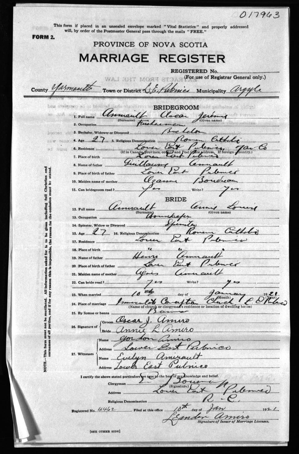 Registration: Year: 1921 number: 17963