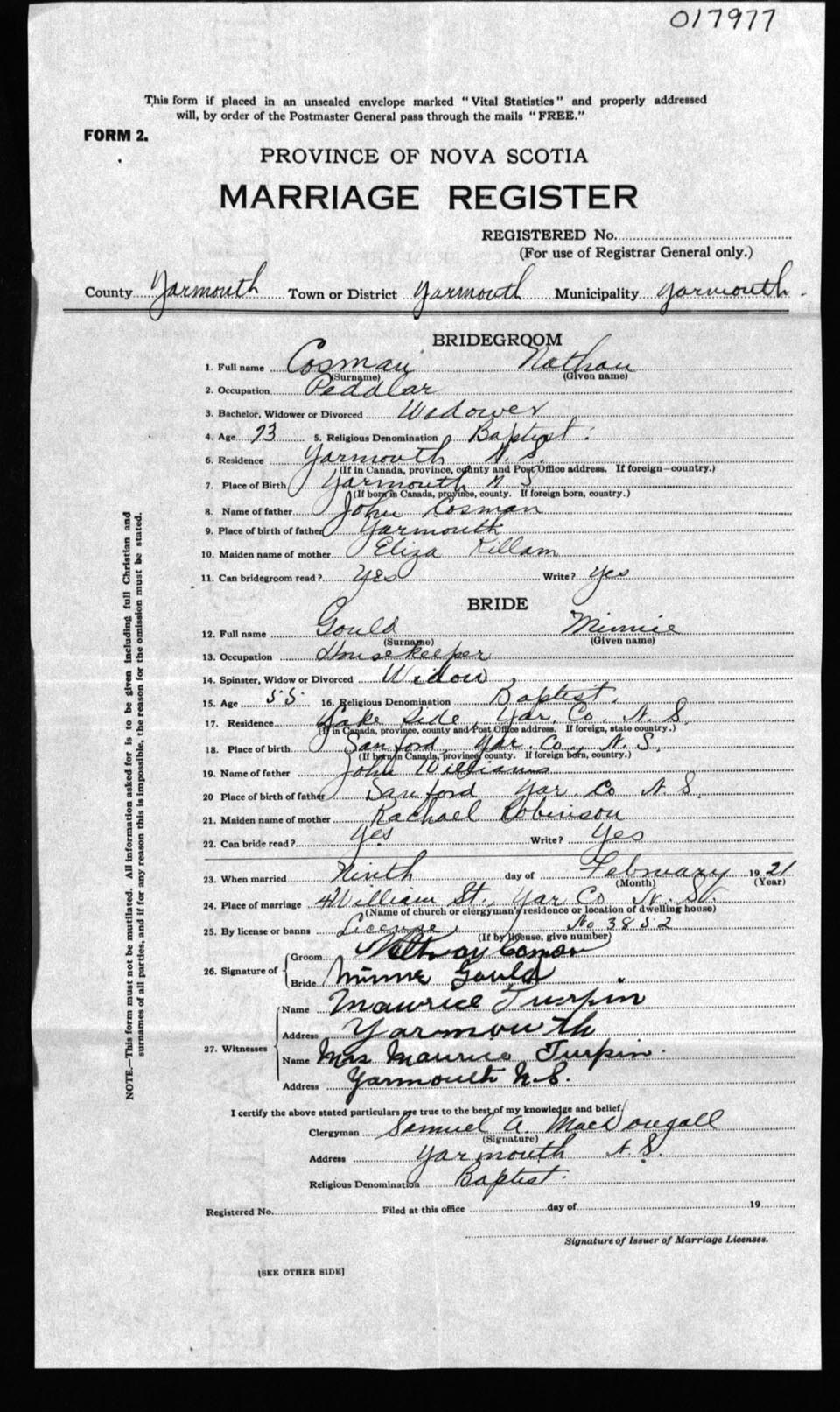 Registration: Year: 1921 number: 17977