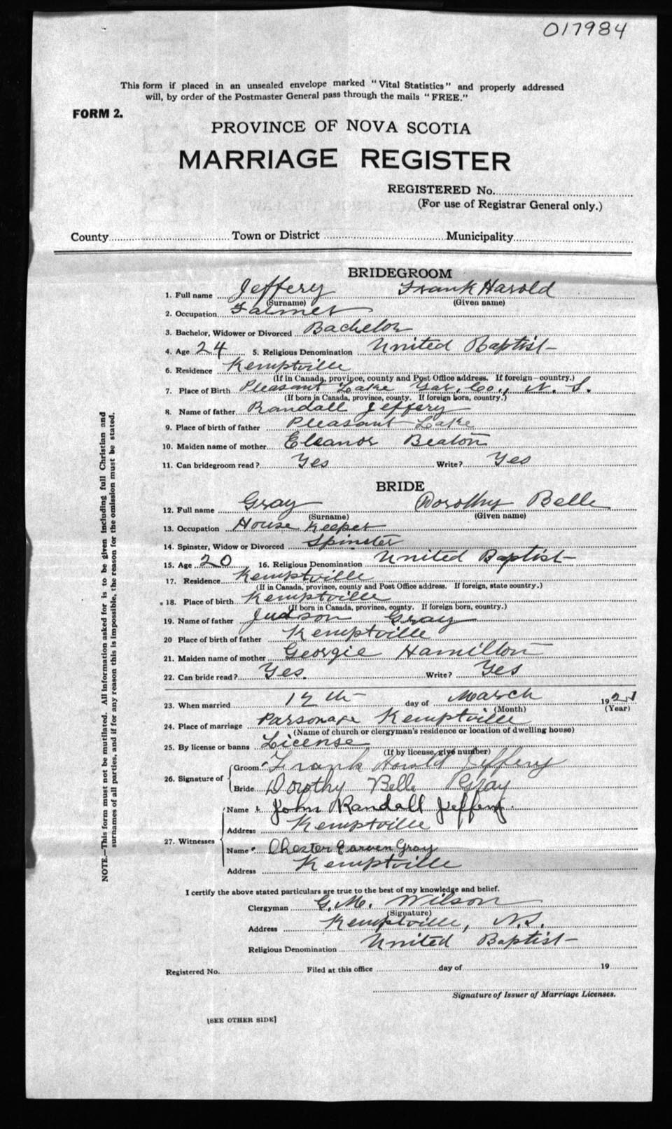 Registration: Year: 1921 number: 17984