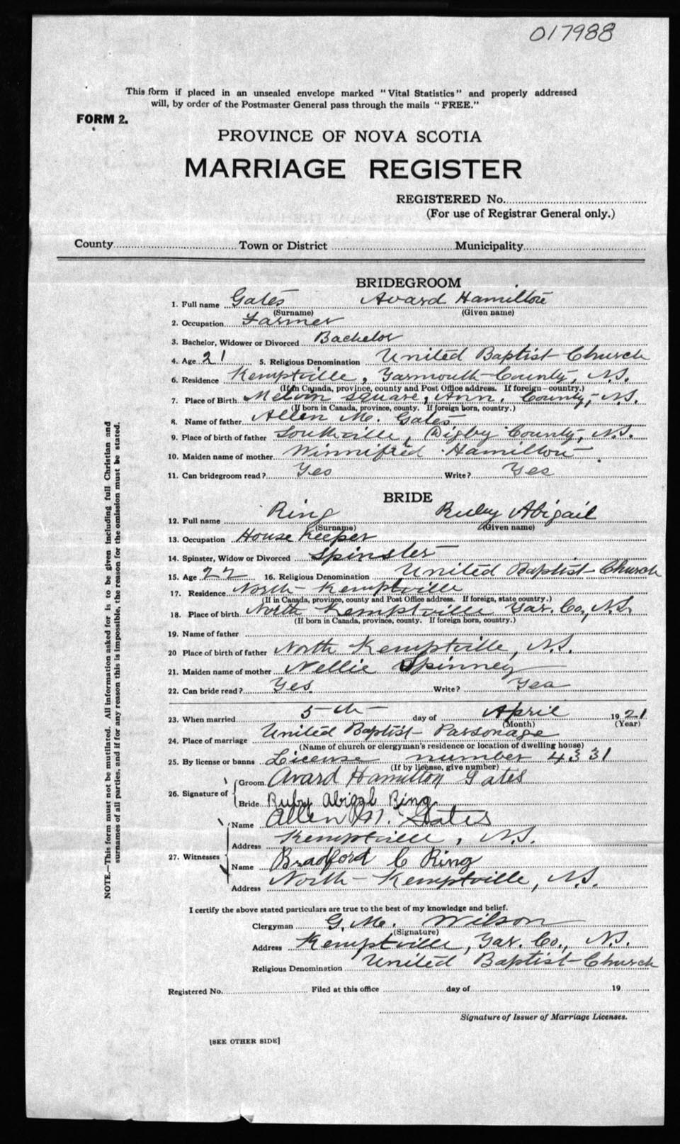 Registration: Year: 1921 number: 17988