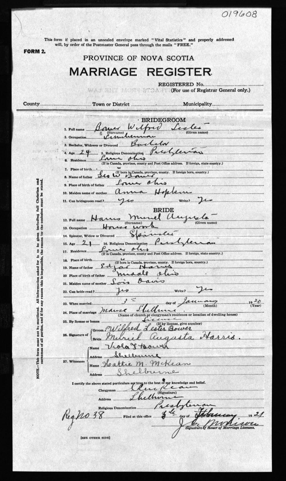 Registration: Year: 1921 number: 19608