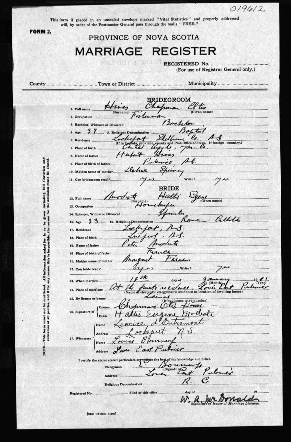 Registration: Year: 1921 number: 19612
