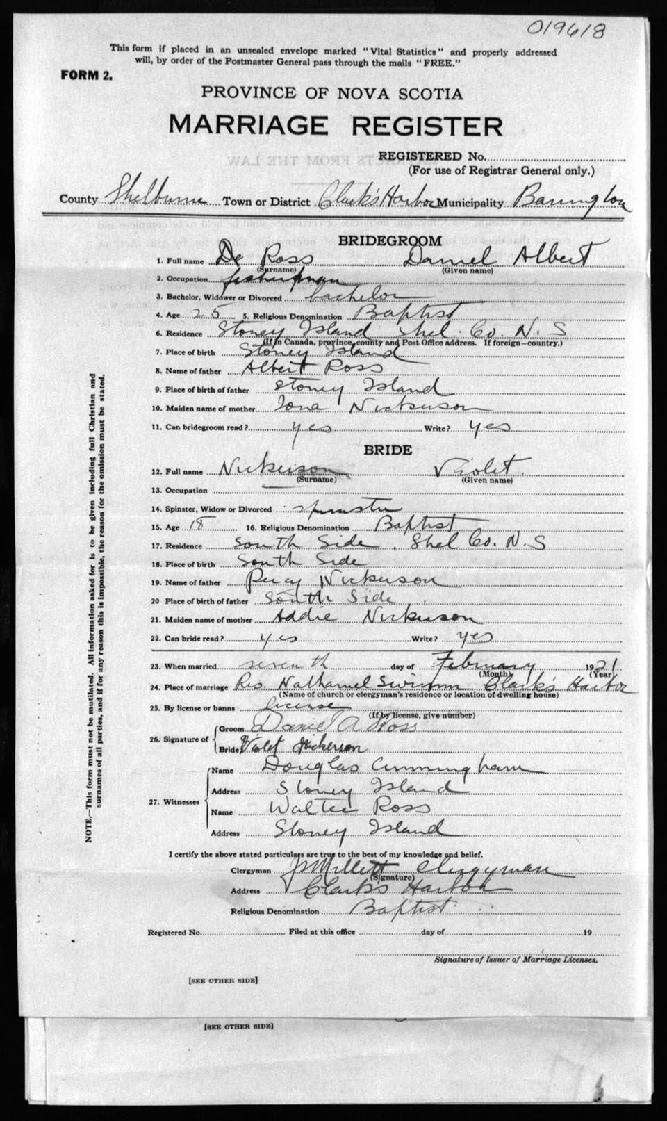 Registration: Year: 1921 number: 19618