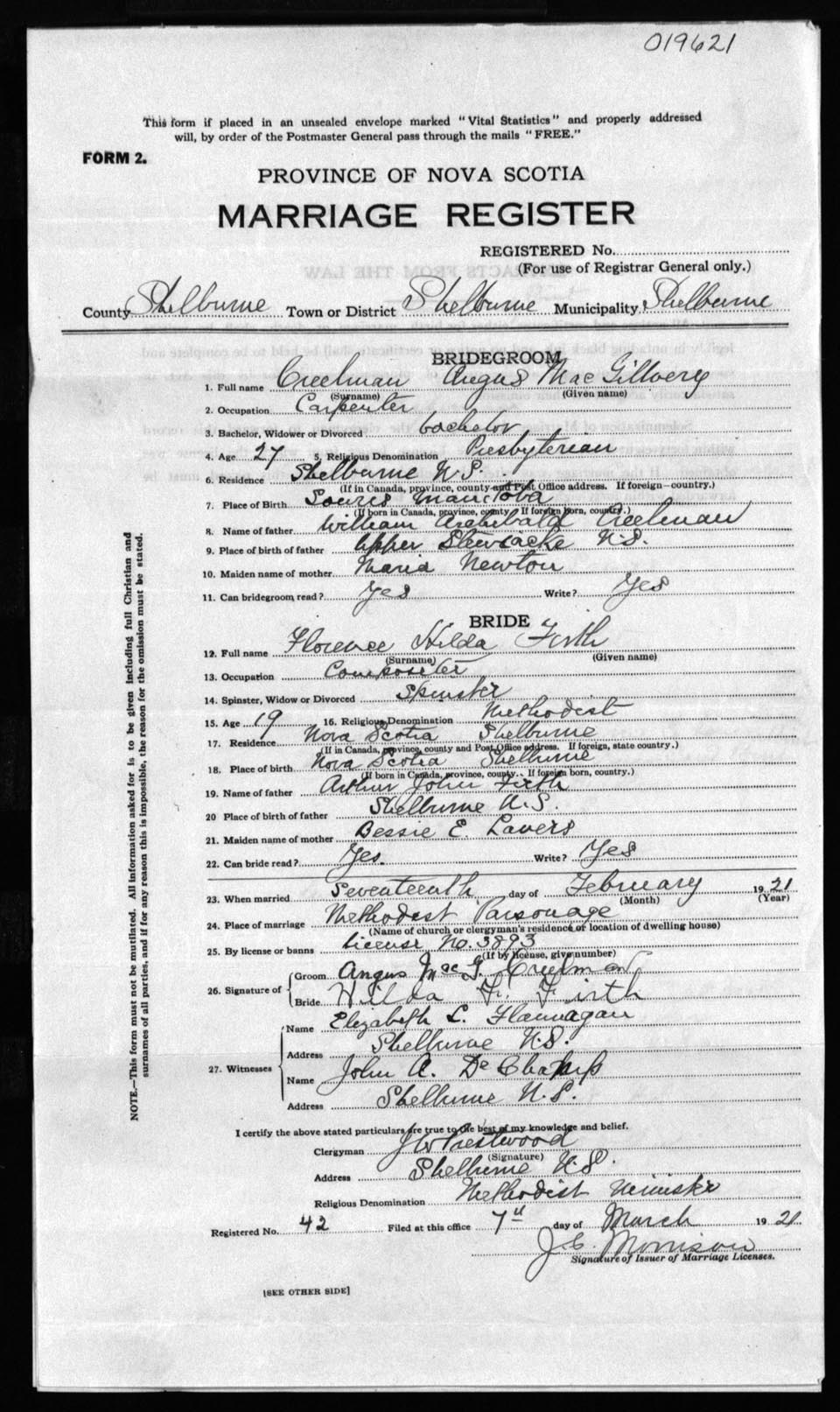 Registration: Year: 1921 number: 19621