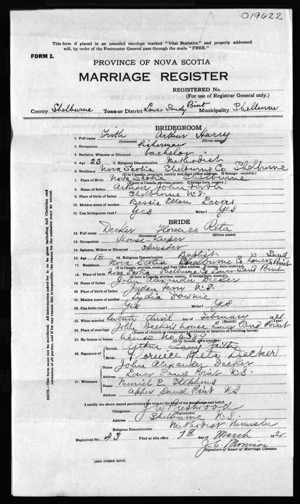 Registration: Year: 1921 number: 19622