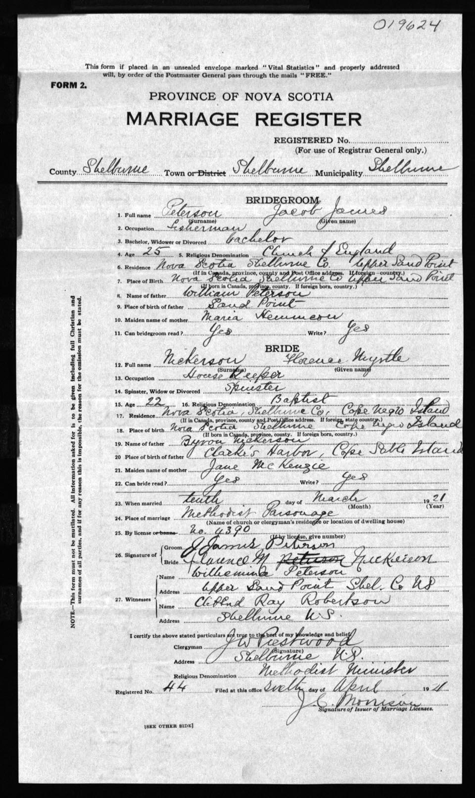 Registration: Year: 1921 number: 19624