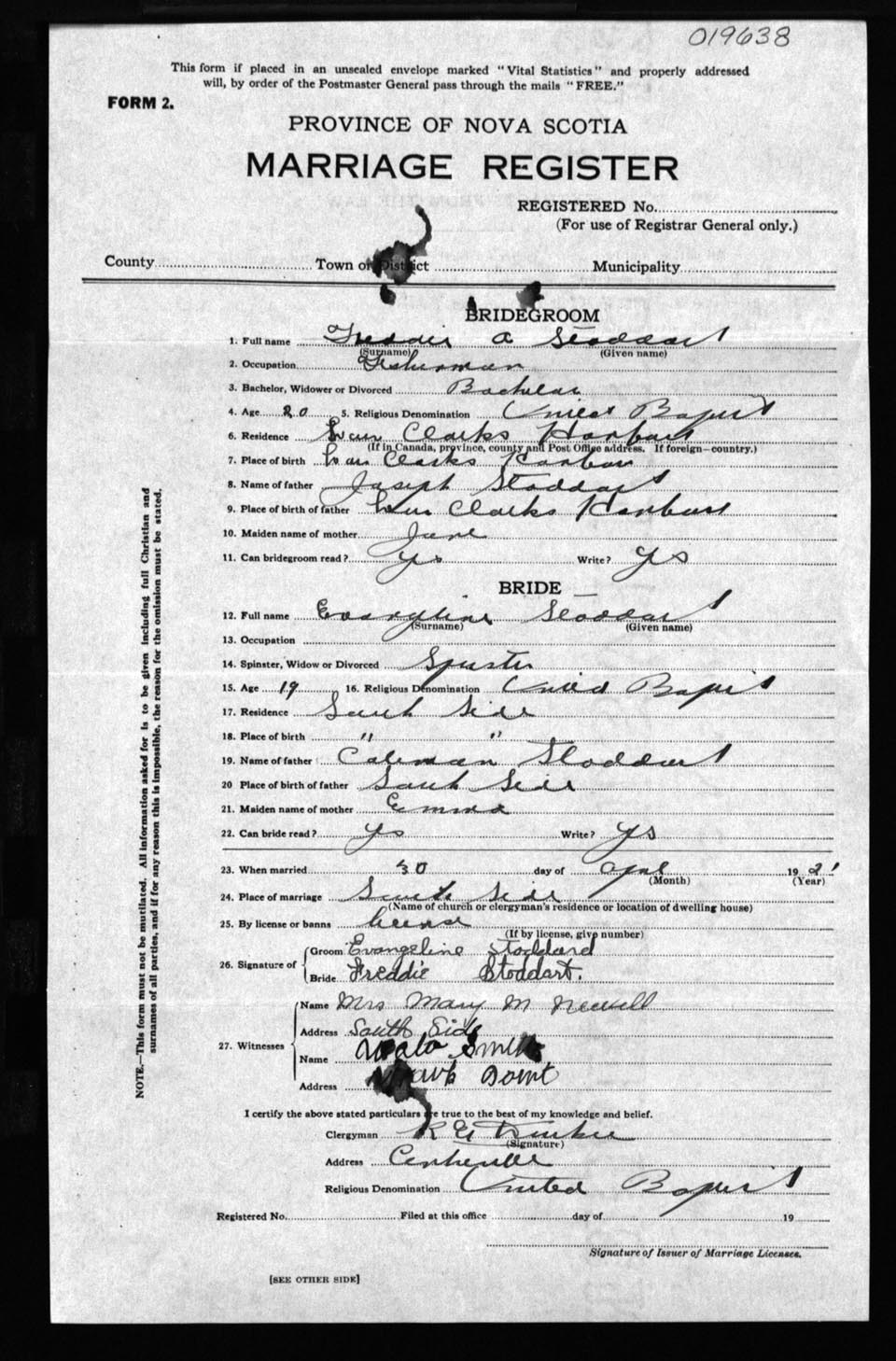 Registration: Year: 1921 number: 19638