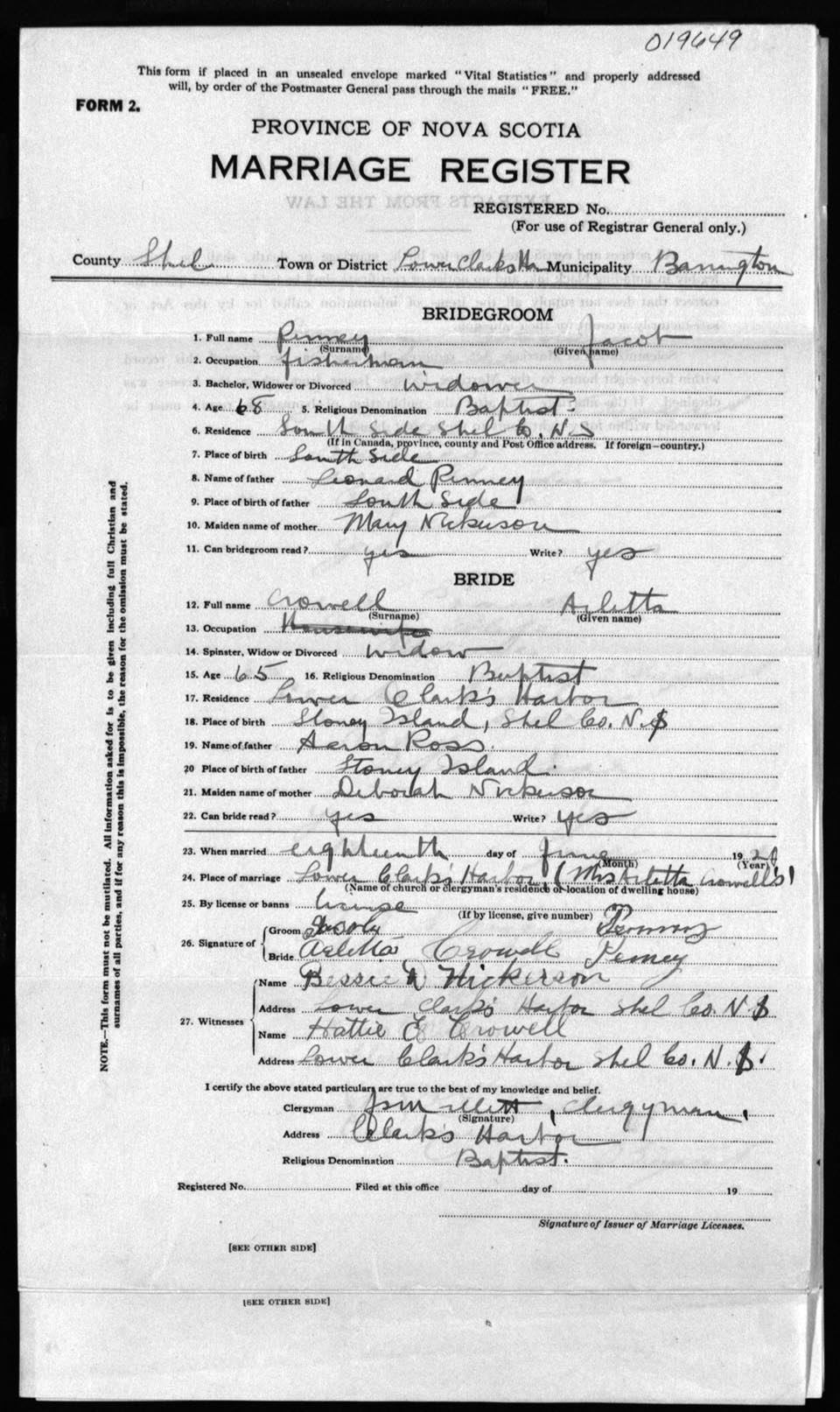 Registration: Year: 1921 number: 19649