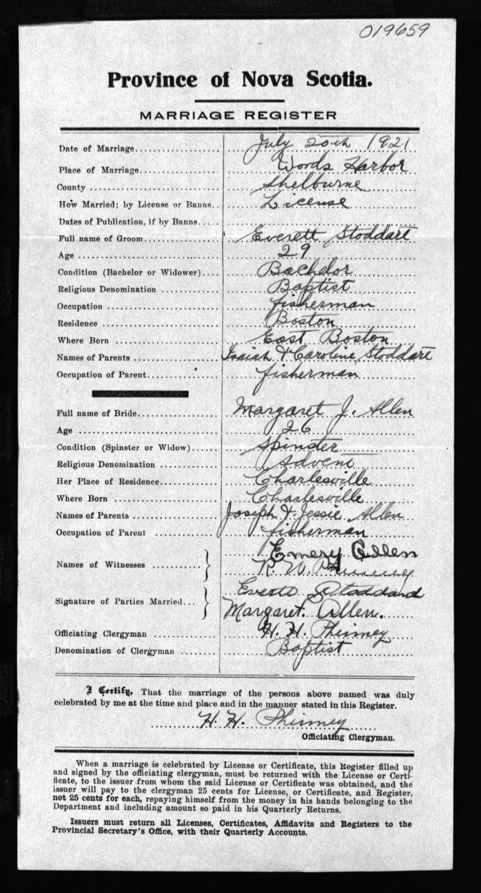 Registration: Year: 1921 number: 19659