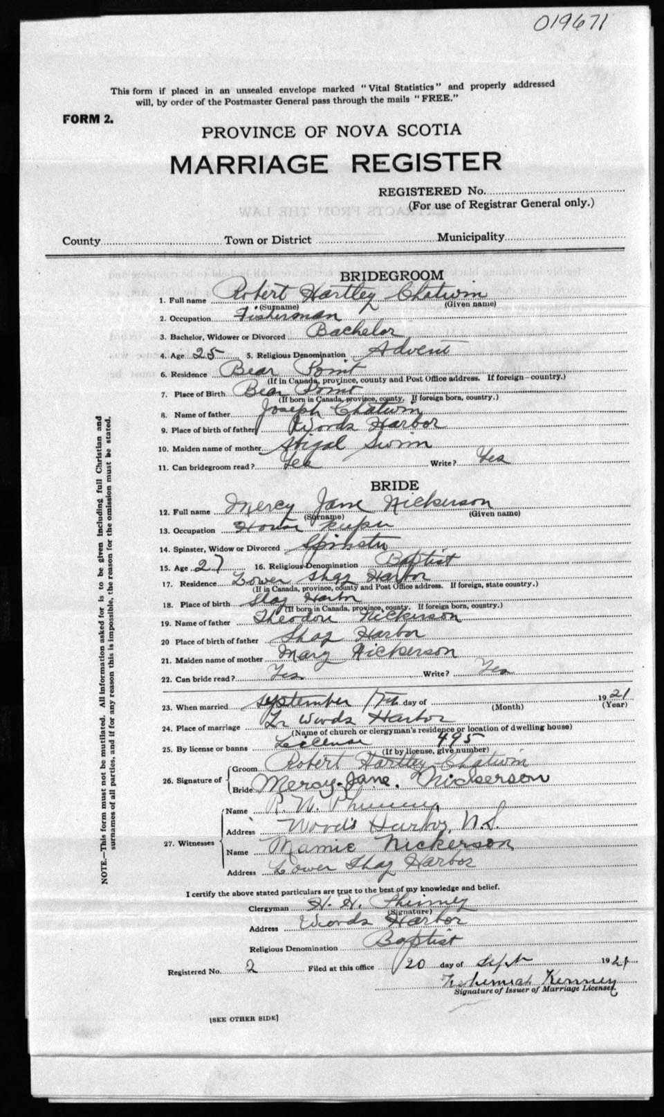 Registration: Year: 1921 number: 19671