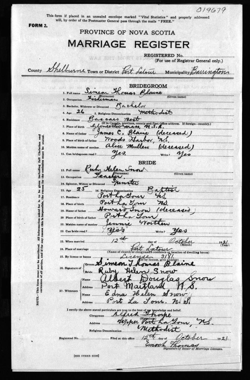 Registration: Year: 1921 number: 19679