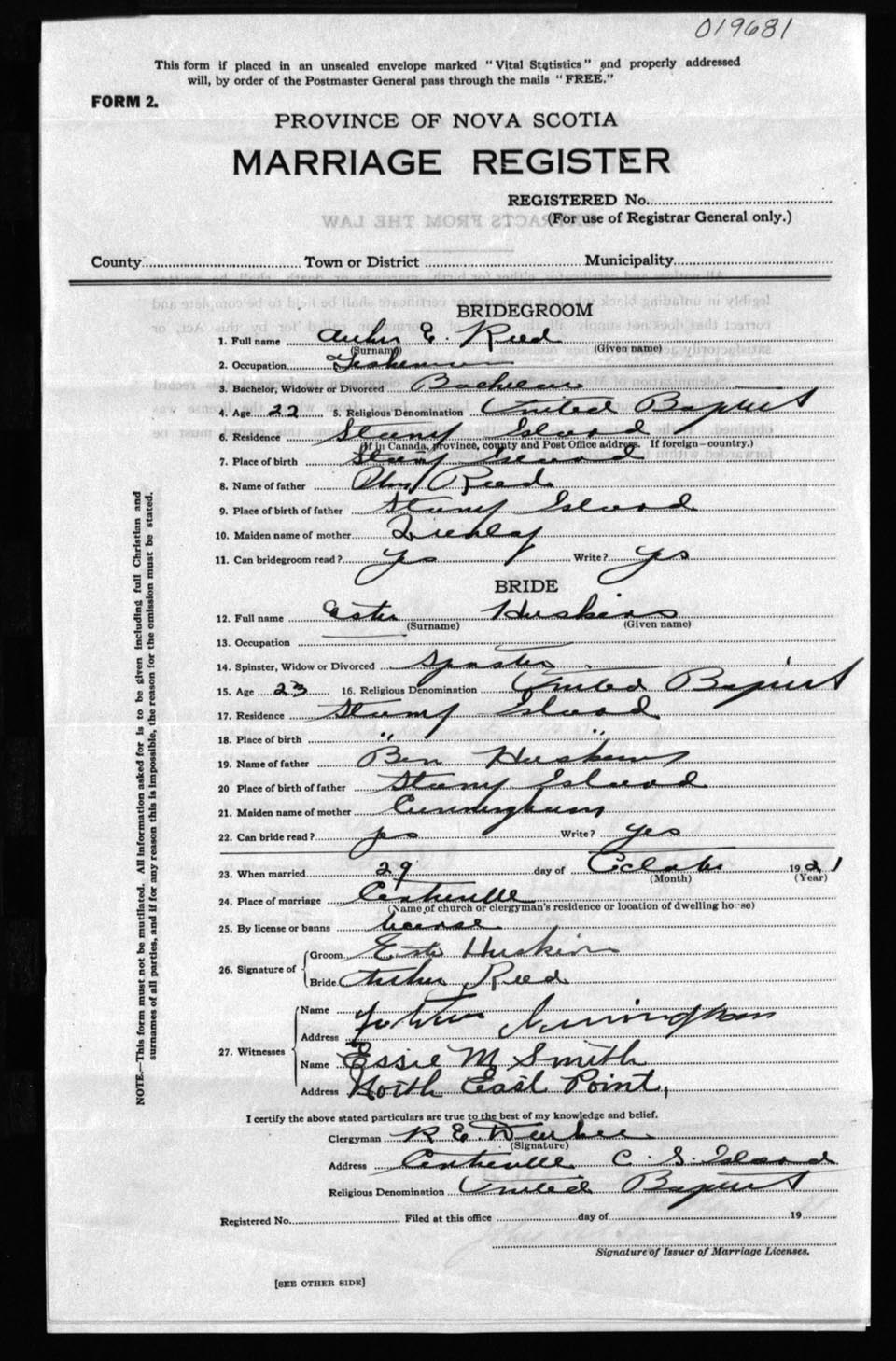 Registration: Year: 1921 number: 19681