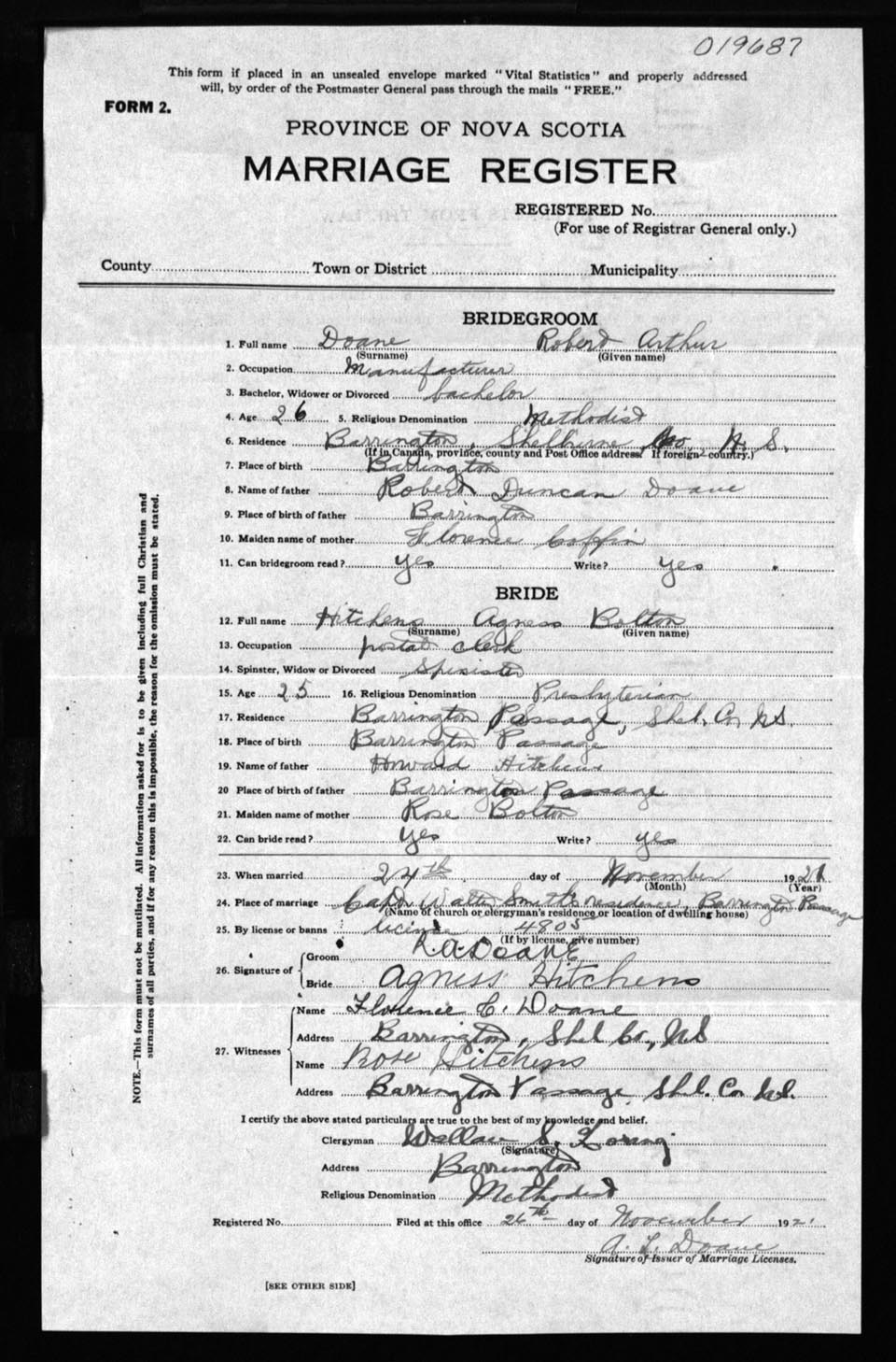 Registration: Year: 1921 number: 19687